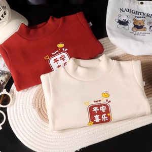 儿童长袖半高领拜年服男童加绒厚款女童宝宝保暖卫衣