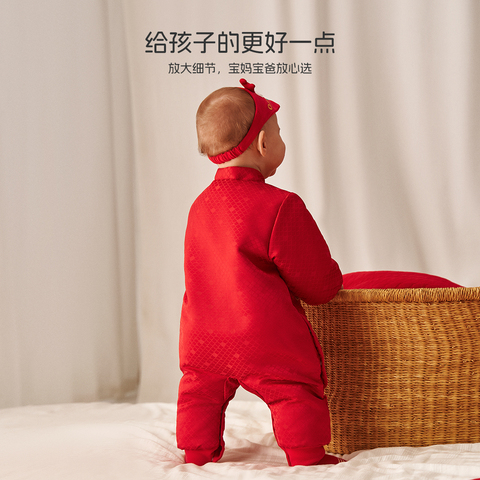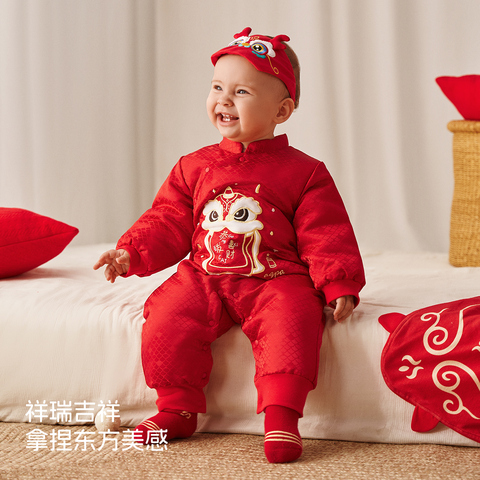 aqpa婴儿棉服连体衣哈衣夹棉保暖秋冬龙宝宝新年红满月周岁外出服