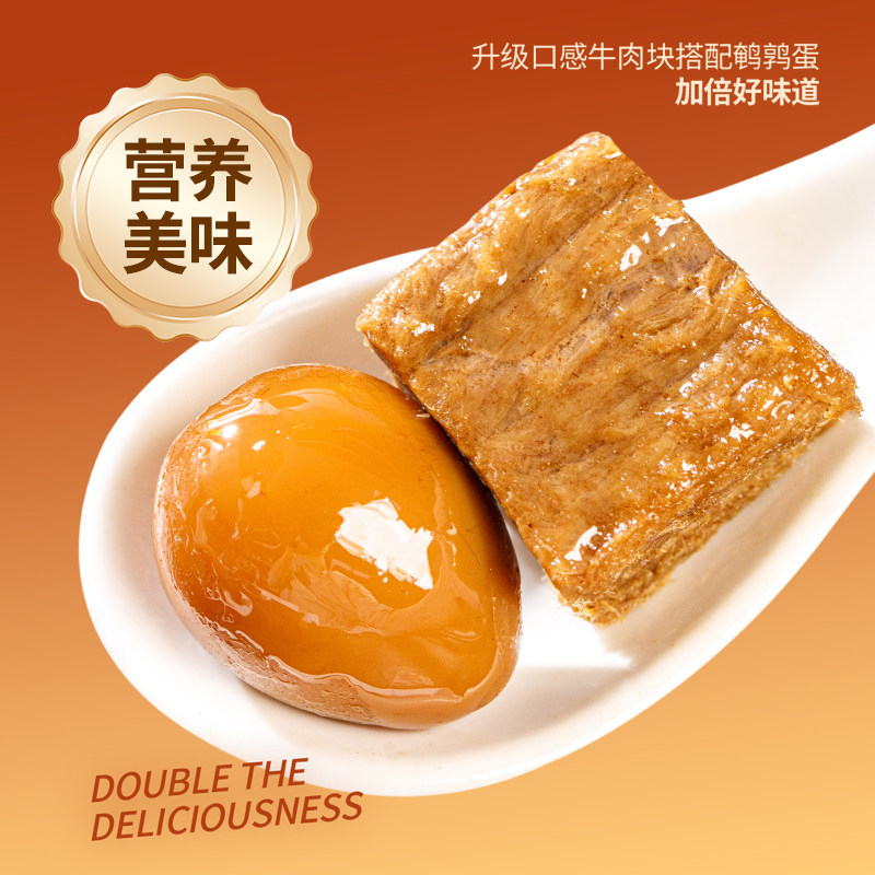 首单+立减到手约15元!牛肉鹌鹑蛋,卤煮到位有滋有味。一口双吃大分量,层层入味更过瘾.细腻醇香,口感Q弹.好原料,每一口都鲜香味,好工艺,层层入味醇香。好口味,美味可口全家皆宜。