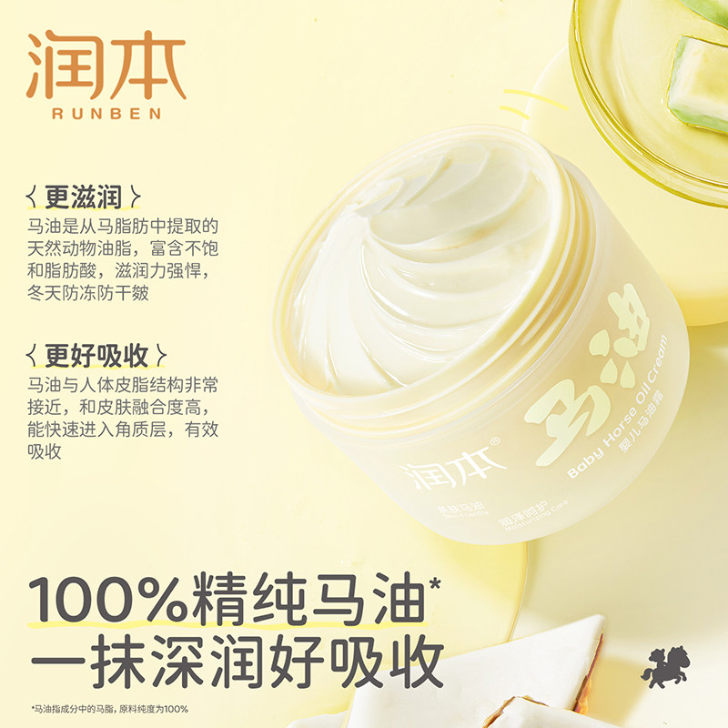 润本婴儿马油面霜儿童保湿滋润秋冬防皴宝宝擦脸油男女童润肤乳