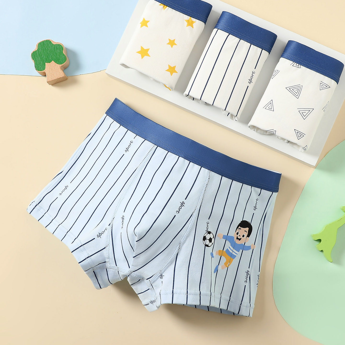 芬腾可安儿童内裤男童纯棉平角中大童宝宝小孩子短裤透气四角底裤