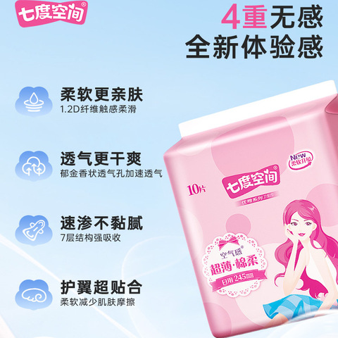 七度空间全周期卫生巾合辑七度空间全周期,纯棉透气,极薄干爽,日夜用卫生巾,透气会呼吸,经期更清爽,全周期可选,让整个经期安心舒适!到手价:25.9元/4件赠7包