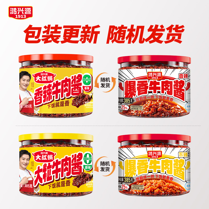 让每一餐都澎湃——鸿兴源爆香牛肉酱,开启厨房新风潮![太阳][庆祝]黄晓明代言,商家S次破价机制。