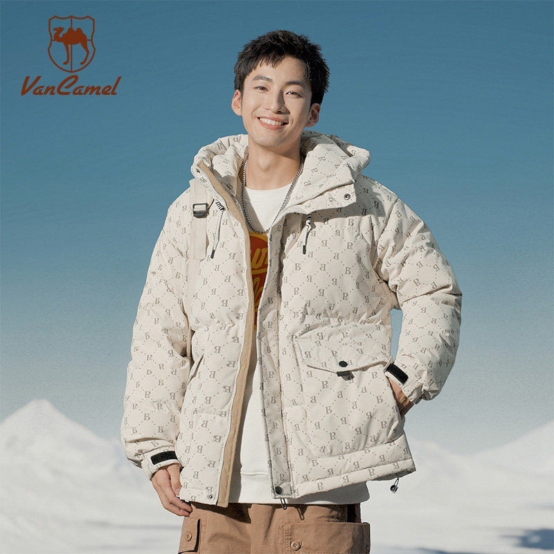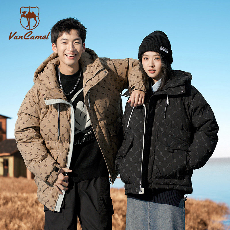 VANCAMEL/西域骆驼满印绒子含量85%短款羽绒服男女同款御寒保暖