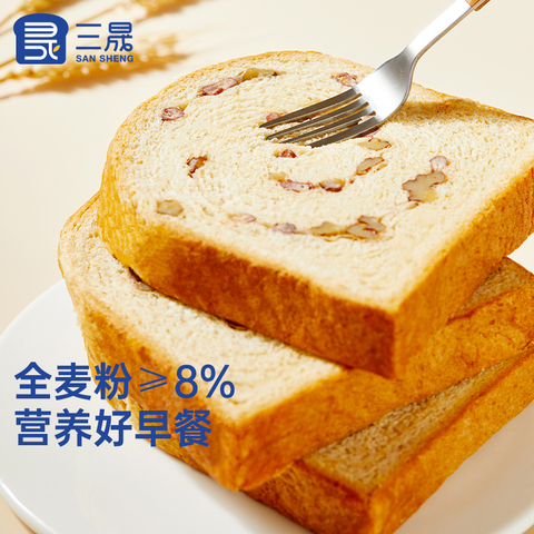三晟无蔗糖核桃全麦吐司坚果红豆早餐速食面包营养饱腹下午茶食品