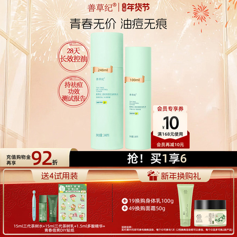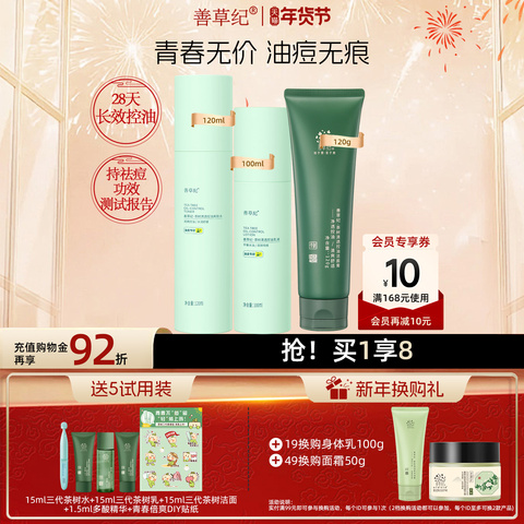 善草纪青春版三代茶树祛痘水乳套装秋冬控油补水舒缓修学生护肤品