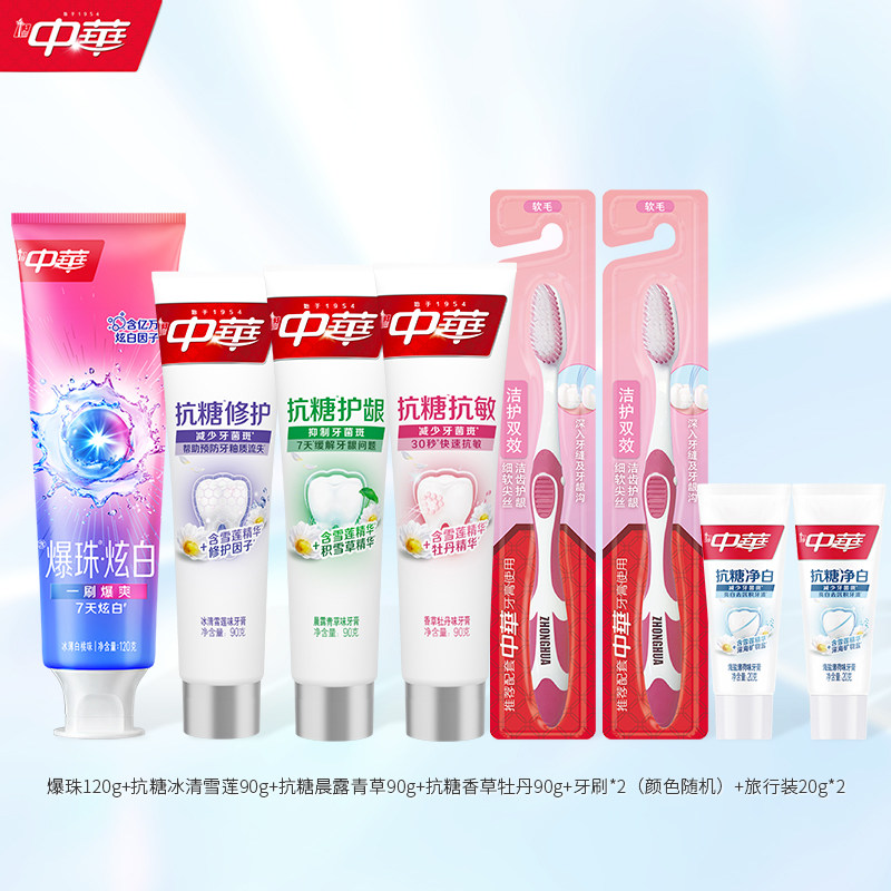 【叠加淘金币减2.75元,到手价20.15元。】中华牙膏八件套到手20.15,店铺推荐,中华牙膏美白抗蛀去黄亮白家庭套组合官方正品