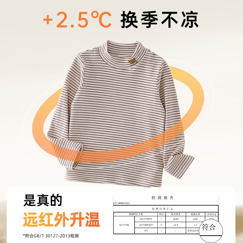 关注店铺有立减五元券!专为儿童设计的柔软打底衫!棉质亲肤透气,半高领防风不硌脖,条纹设计简约百搭~