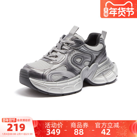 19¥ CA381 P94EUda8hUc¥ https://m.tb.cn/h.7QhDXQZ 骆驼星宇老爹鞋女鞋2025秋季新款厚底复古银色运动鞋女百搭休闲鞋