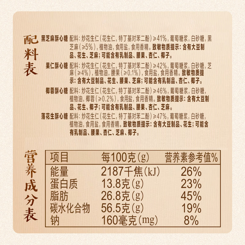 徐福记经典酥心糖以香酥口感和传统风味深受喜爱,这款520g聚宝盆礼盒包装喜庆大方,适合春节送礼、婚庆喜糖等场合。采用优质原料制作,层次分明、甜而不腻,承载浓浓年味与祝福。礼盒设计寓意吉祥聚财,既保留中式糕点的传统特色,又符合现代口味需求,是走亲访友、传递心意的应景之选。