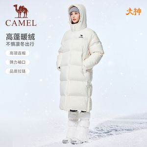 骆驼运动中长款羽绒服女款冬季黑色加厚北影连帽羽绒外套男