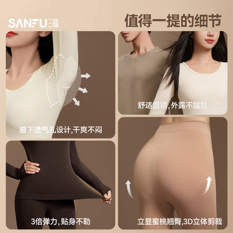 三福秋冬打底内衣采用自发热纤维,持续升温锁温,贴身不臃肿。无痕剪裁贴合身形,弹性面料穿着舒适不易紧绷,适合日常居家、户外或运动穿搭。男女款均有,满足全家保暖需求,秋冬季出行轻松应对低温天气,温暖体验一步到位。