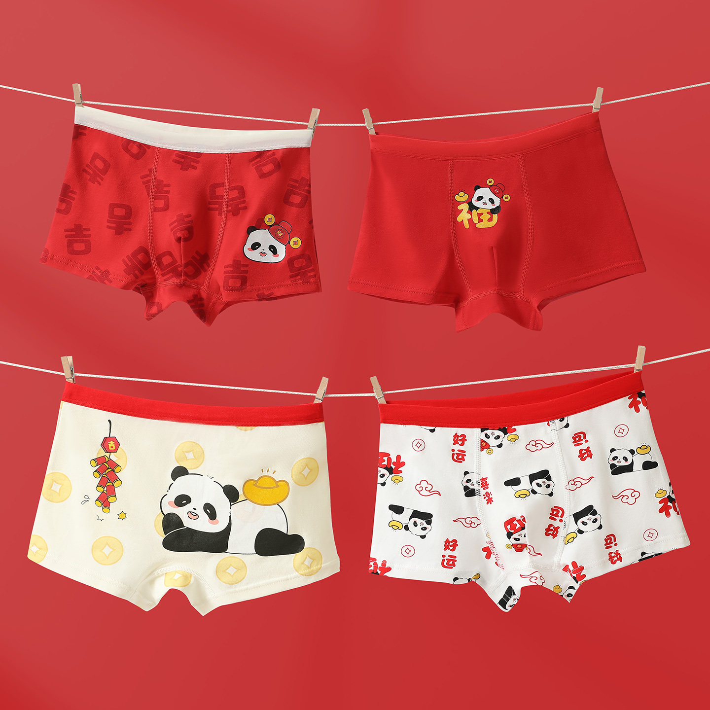 芬腾可安儿童内裤男童新年本命年A类纯棉裆抗菌中腰平角裤四角裤