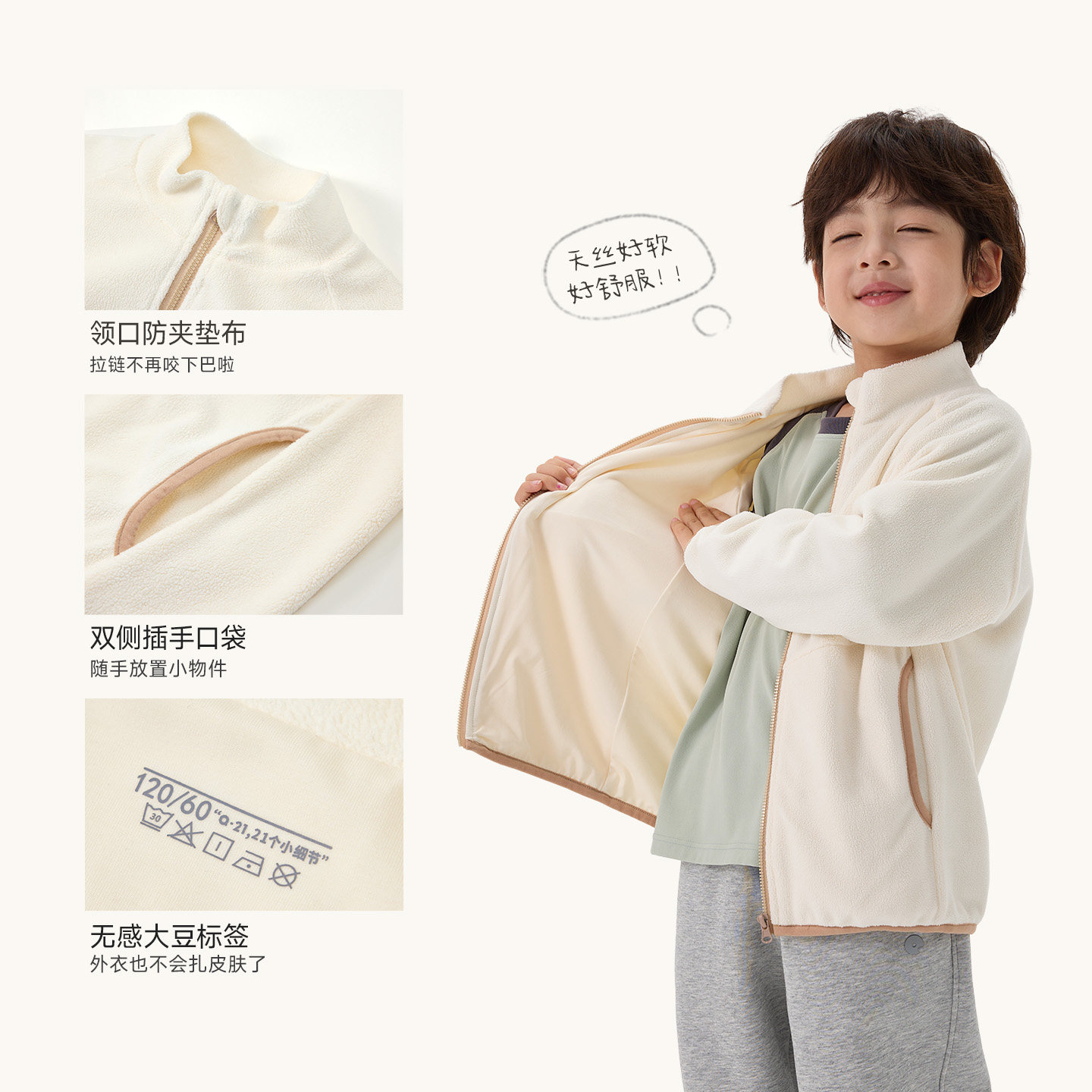 Q21儿童外套天丝摇粒绒男女孩秋冬新款吸湿排汗A类保暖百搭上衣