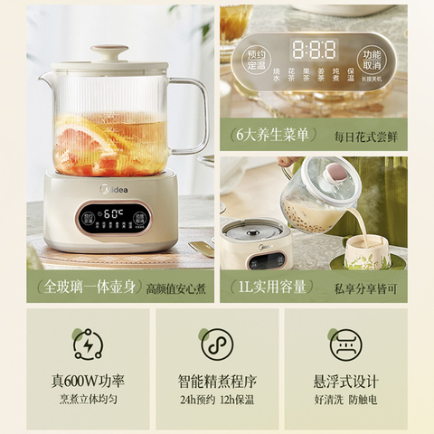 美的全玻璃恒温养生办公室小型多功能家用炖煮一体电热水壶纯玻璃