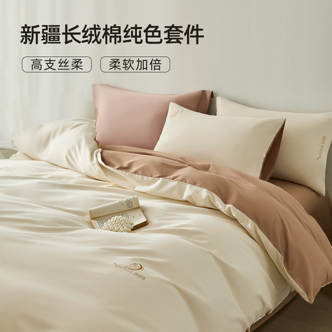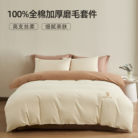 奥若拉100%棉刺绣加厚磨毛四件套