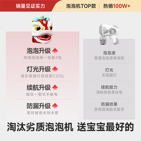 2025新款电动新年烟花泡泡机!融合醒狮灯笼+手持加特林造型,声光联动、泡泡漫天,年味氛围感拉满~ 【34.9元】轻松入手!儿童安全低噪设计,电池续航久,春节拜年、派对互动超吸睛!把热闹和童趣装进掌心,马上开启欢乐模式!