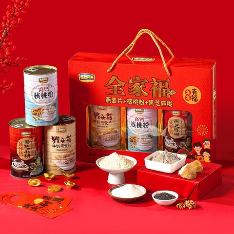 礼金到手38.7元。彩印铁罐+内衬金卡纸+烫金纹彩,精装礼盒!!猴头菇牛奶燕麦片+黑芝麻糊+高钙核桃粉,伴手好礼,年货礼盒。
