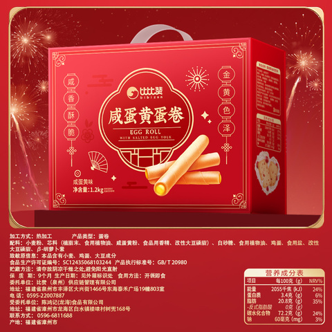 比比赞咸蛋黄蛋卷礼盒装过年送礼团购饼干小零食休闲食品整箱批发