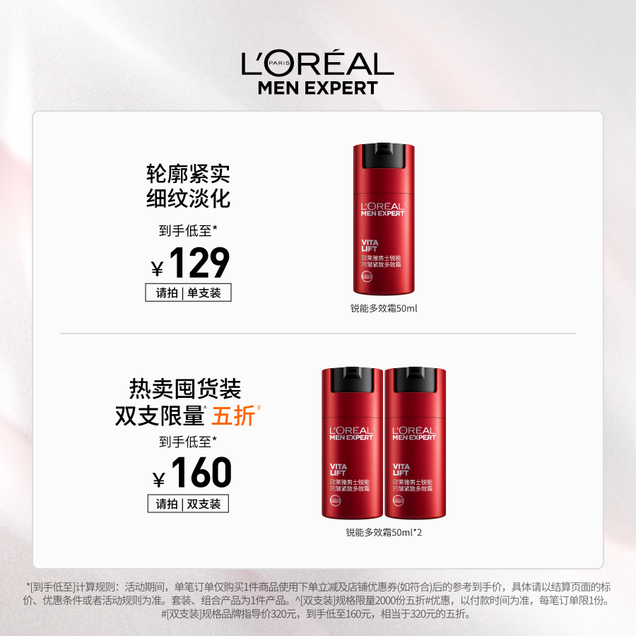 欧莱雅男士锐能多效霜抗皱紧致提亮保湿减少皱纹男面霜官方正品