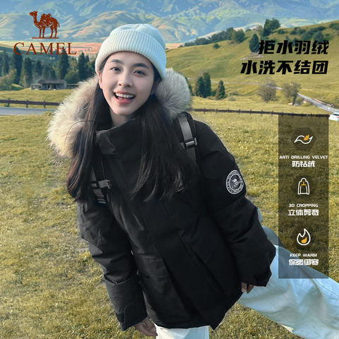 97《 CZ225 YbHdUWd8qiQ《 https://m.tb.cn/h.7PUbLmR 骆驼男装短款羽绒服男毛领黑色加厚鸭绒外套派克冬季防水户外工装