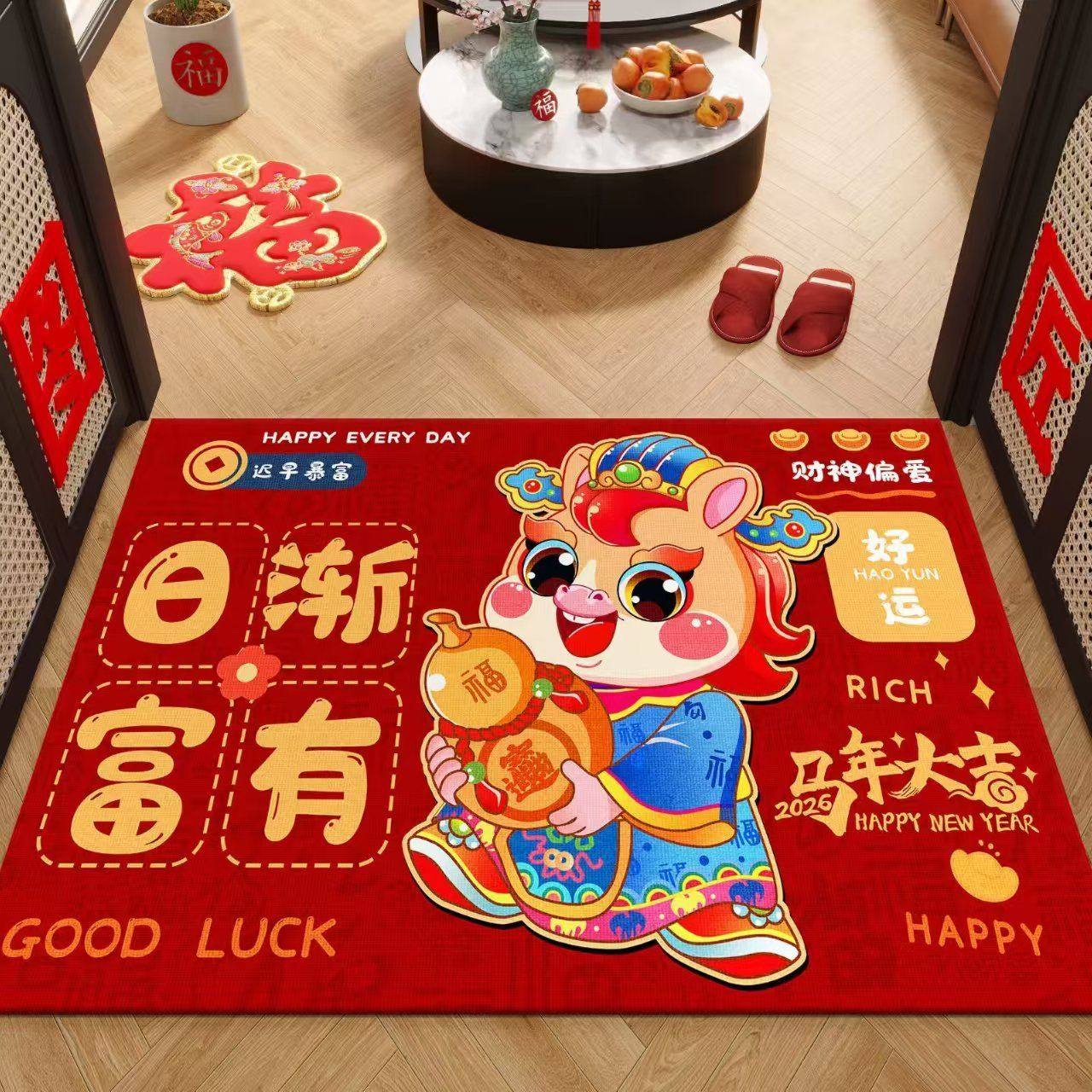 大门口进门地垫红色招财新年门垫脚垫防滑垫地毯出入平安地垫家用