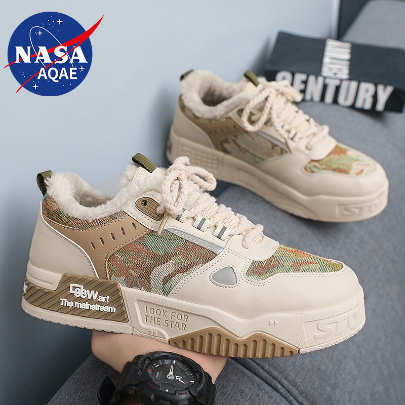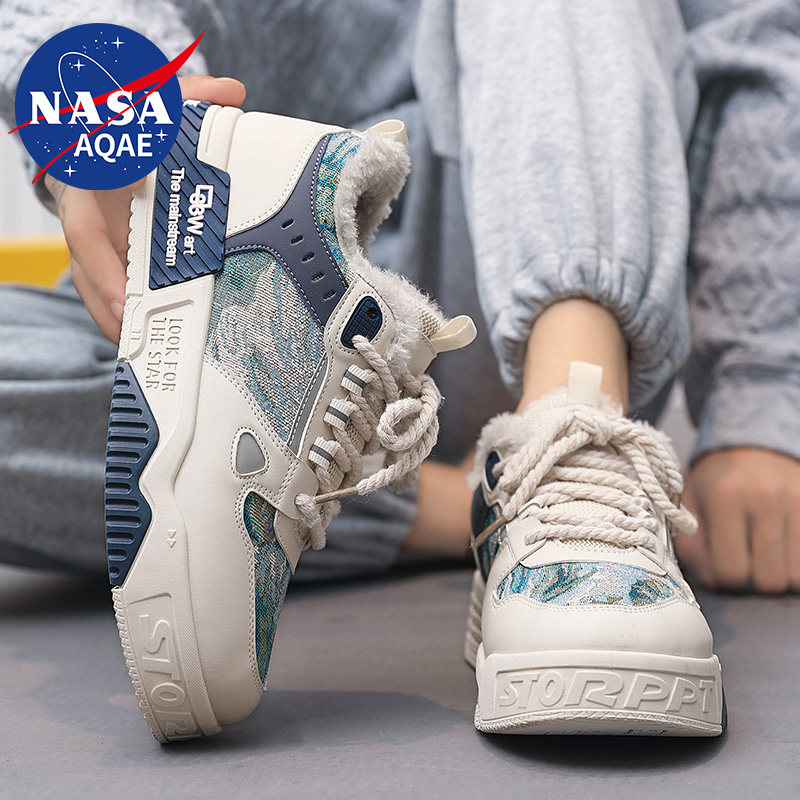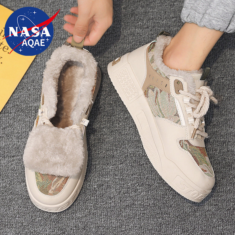 NASA AQAE联名冬季百搭加绒运动靴厚底老爹保暖户外工装学生板鞋
