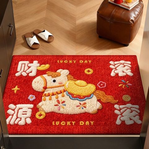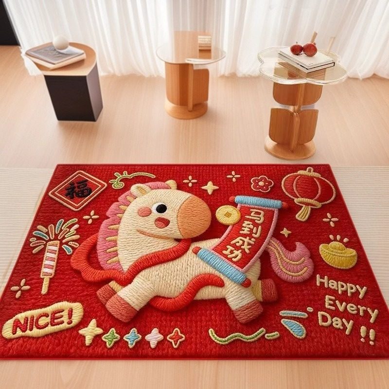 马年必备红色入户地垫!卡通小马造型超吸睛,喜庆配色添年味,家用防滑易清洁,进门垫脚迎福,新年开门见喜气!~【赠运费险】