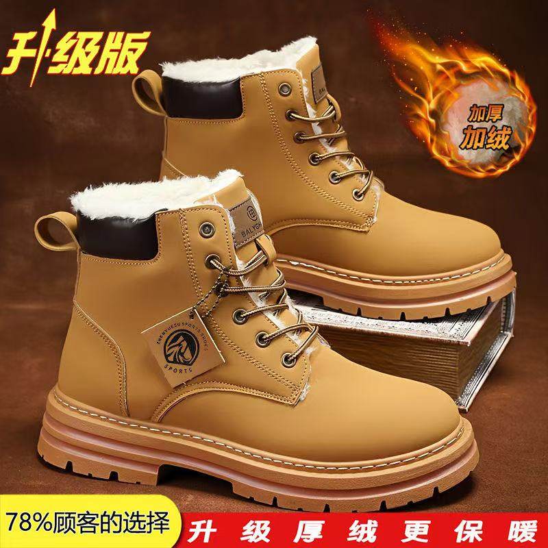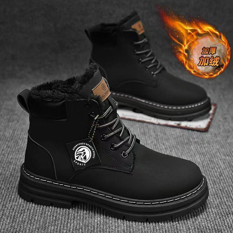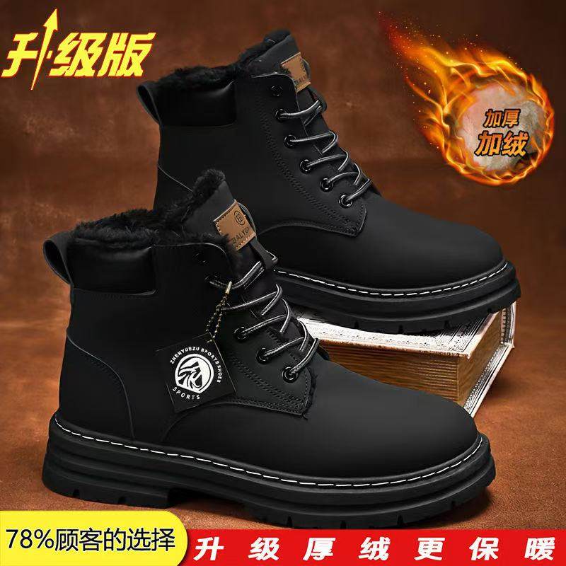 马丁靴男冬季加绒英伦复古高帮皮靴男士中帮厚底工装短靴加厚棉鞋