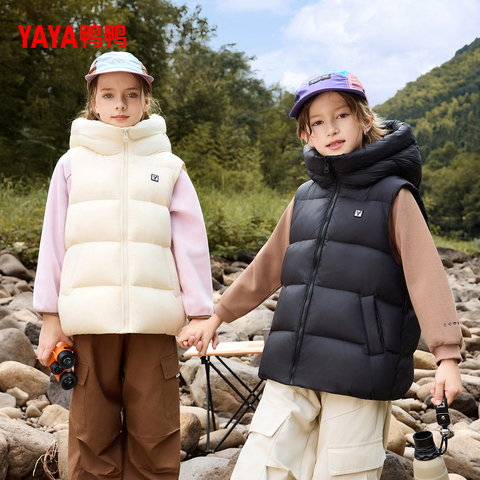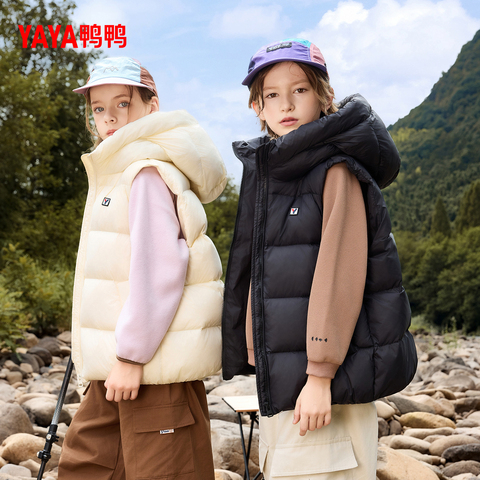 【叠淘金币6➕消费券200-25,到手107】鸭鸭儿童羽绒马甲2025冬新品男女童短款连帽加厚中大童上衣外套!