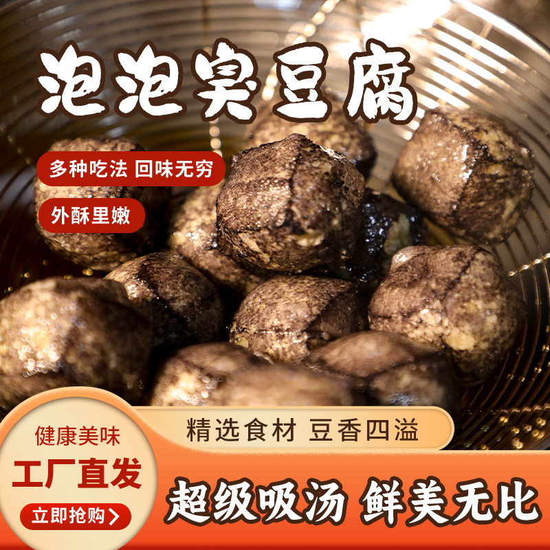 螺蛳粉火锅臭豆腐泡泡包浆小块黑白色经典柳州小吃小粒臭干子。