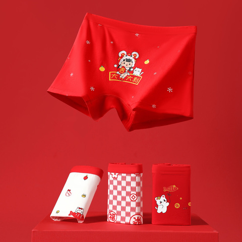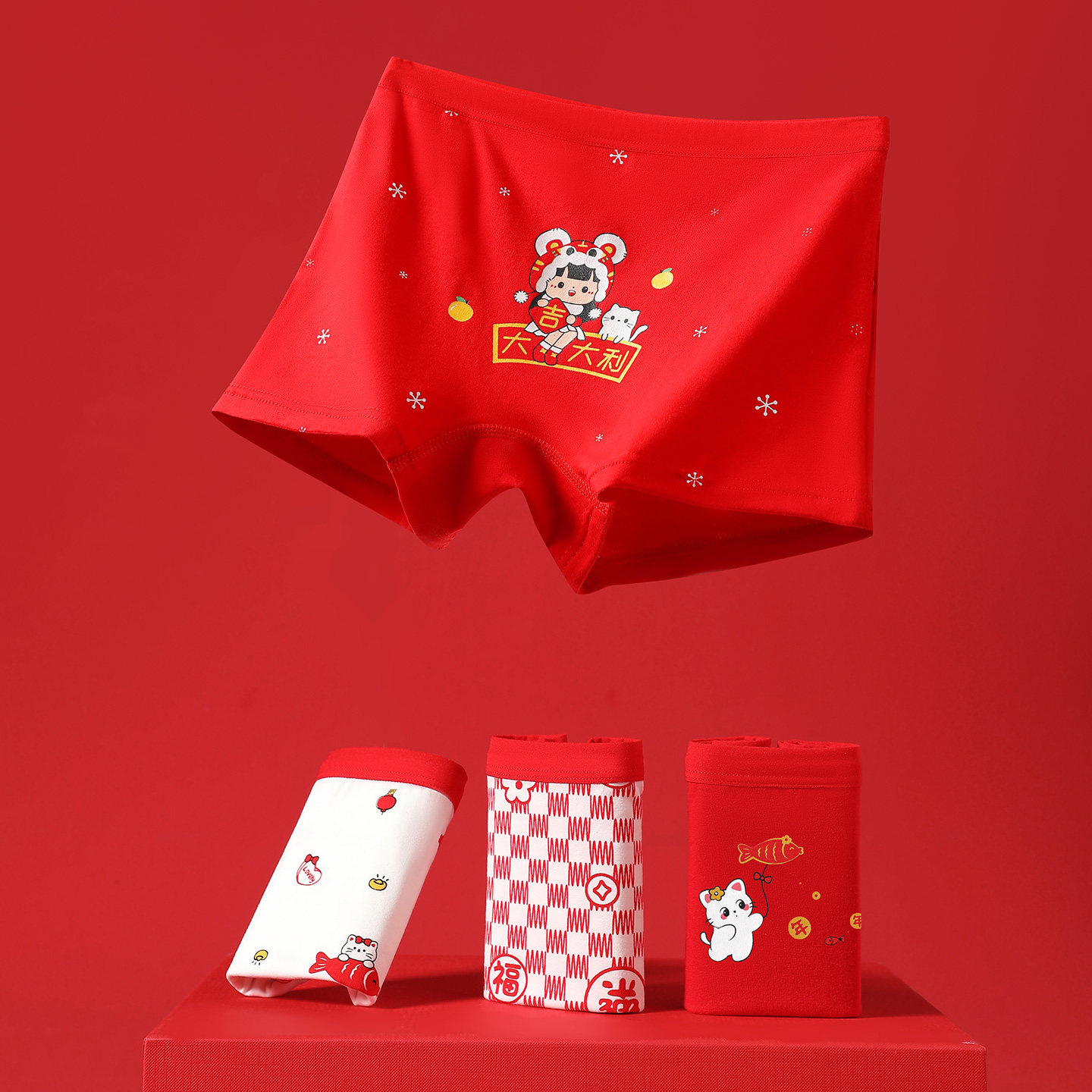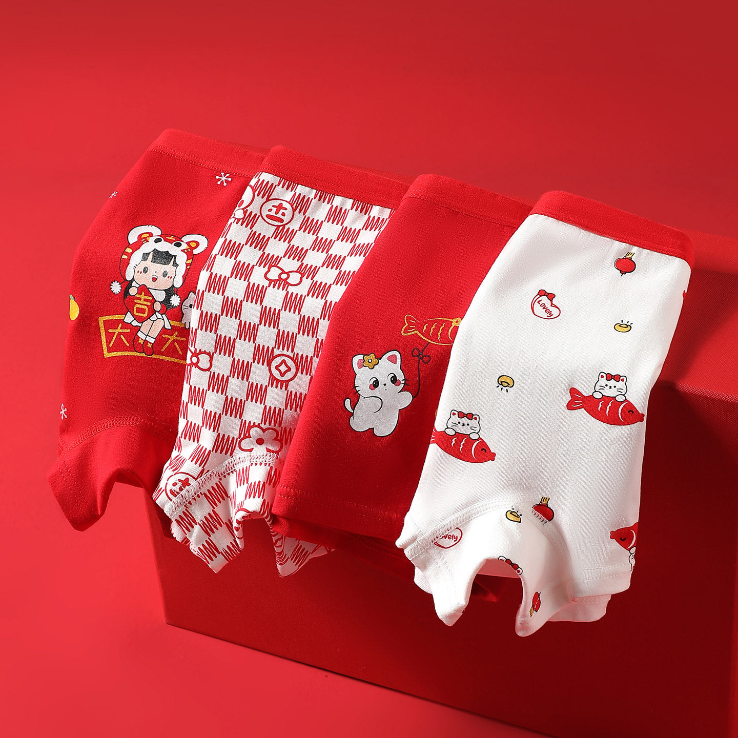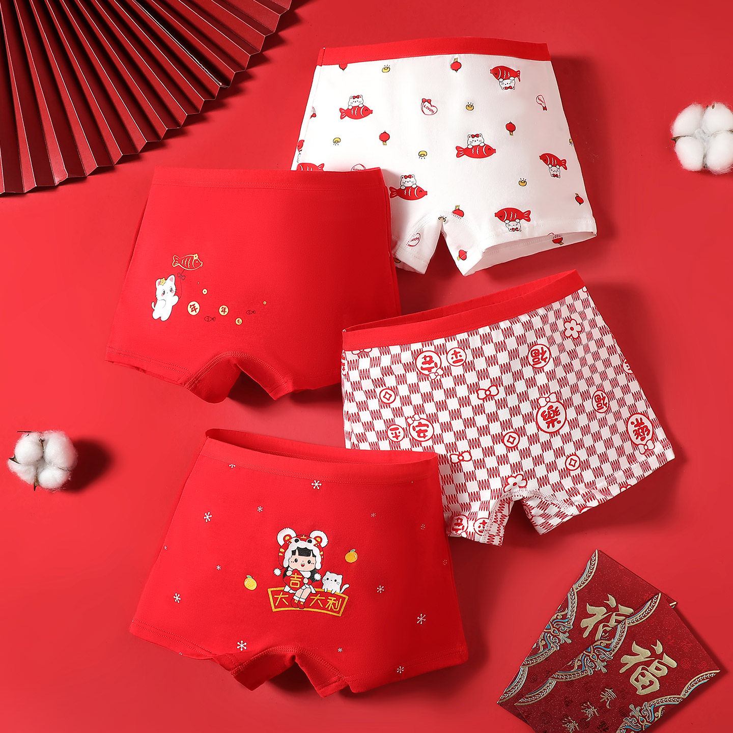 芬腾可安儿童本命年内裤A类纯棉抗菌红色中腰四角裤女童平角短裤