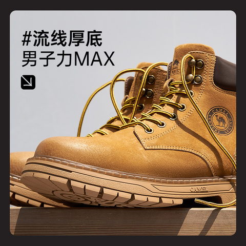 骆驼新品真皮登山男女工装靴