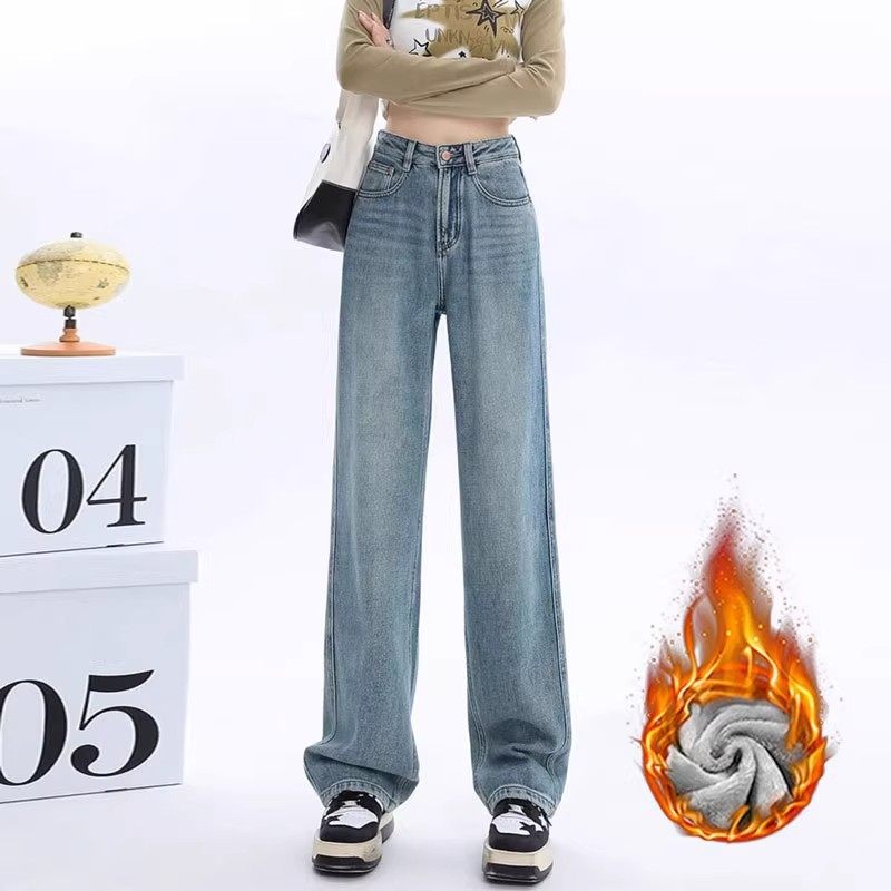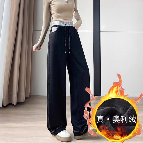 羊毛加绒冬保暖糯米裤女春季新款垂感高腰拖地窄版休闲直筒阔腿裤