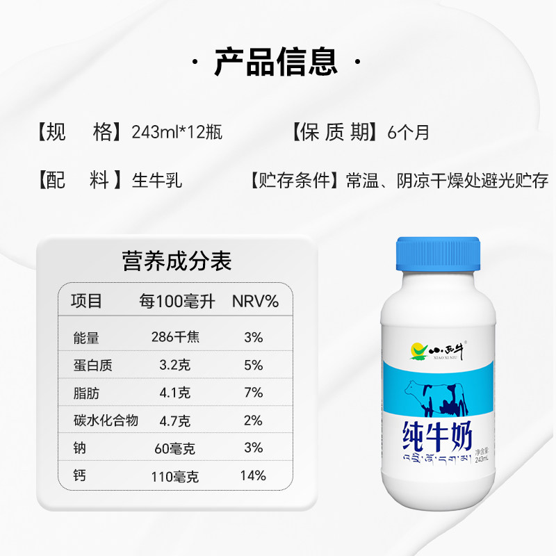 【下拉详情点击淘金币,领取礼金补.贴,88vip到手更优惠!】小西牛青海纯牛奶243ml*12瓶青藏高原牛奶营养早餐纯牛奶,口感纯正浓香,营养价值高,营养又好喝!