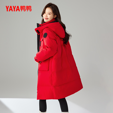 鸭鸭中长款休闲羽绒服女