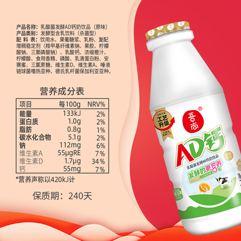 吾尚经典原味AD钙220g*8瓶,叠加88vip+淘金币到手7.46元!