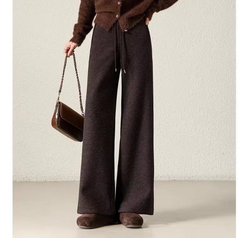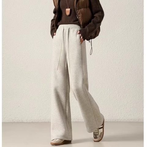 羊毛加绒冬保暖糯米裤女春季新款垂感高腰拖地窄版休闲直筒阔腿裤
