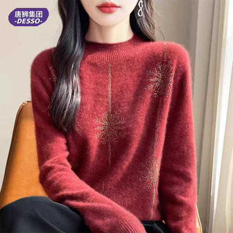 唐狮集团DESSO冬季新款半高领套头针织衫多款烫钻百搭重工打底衫F