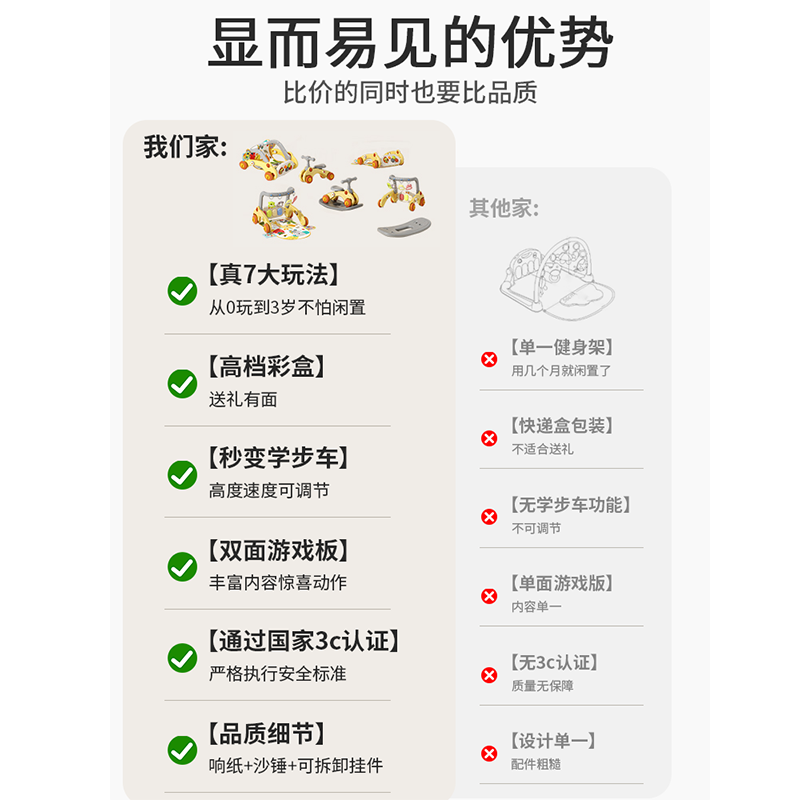 这款七合一婴儿健身架太实用了!从0-3个月的躺玩健身架,到学步车、摇摇马等七种模式,一步到位满足宝宝成长需求,配色软萌还带趣味声光,顺丰包邮送礼超体面。券后159元起,既是哄娃神器也是成长玩伴,新手爸妈闭眼入~