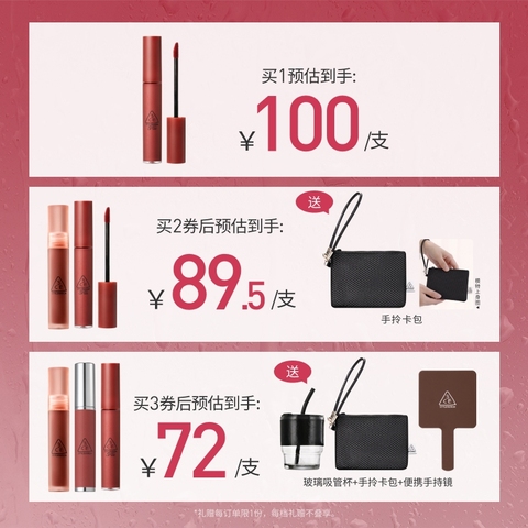 拍2件,金币-精致生活圈-消费券后130.6元,单件65.3元,送黑色手拎。重磅新品,半透质感包装,轻透露水质地,一抹瞬间水光变哑光,一抹成膜,持久不脱色,轻若无感,宛如天生唇色~【赠运费险】