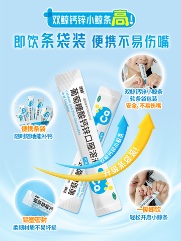 双鲸葡萄糖酸钙锌口服溶液,专为儿童及成人科学配比,一瓶集齐钙锌维生素精华。口感酸甜温和不刺激,每天一盖轻松养成健康习惯。
