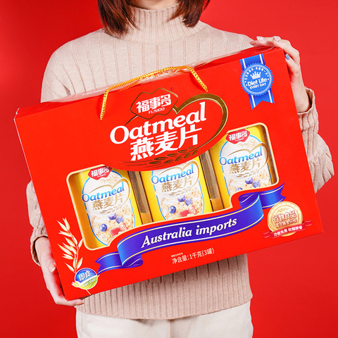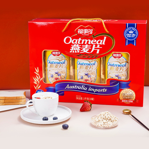 福事多品牌!内含3桶共1kg!超市卖59亓!高纤高蛋白,健康营养,精选澳洲燕麦,片片颗粒饱满!过年走访伴手礼高档礼盒装,囤点送礼、自吃太棒了!营养又健康!【赠运费险】