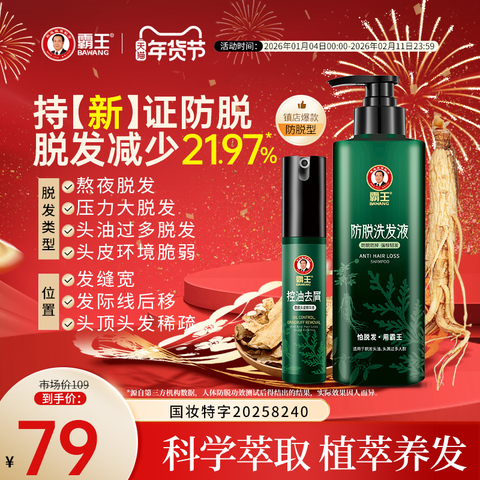 87¥ CZ007 Vu7oUdjZtRR¥ https://m.tb.cn/h.7kOLJ0y 霸王防脱固发洗发水控油蓬松洗发露侧柏叶滋养洗头膏男女生套装