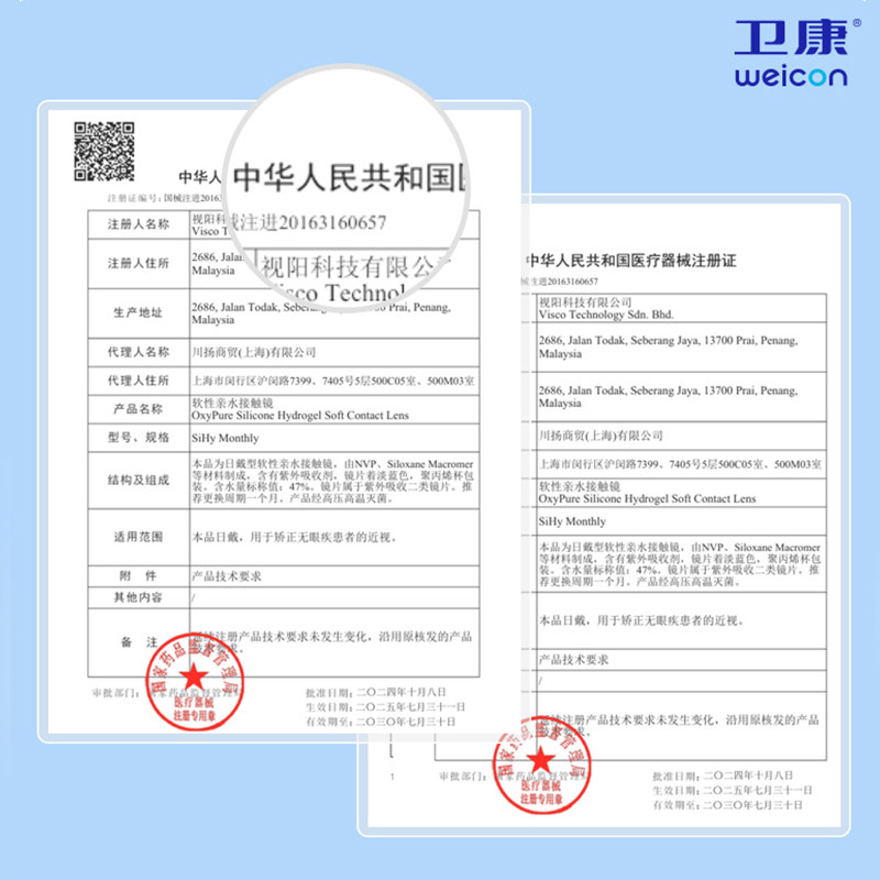 卫康润视O2硅水凝胶月抛3片装近视隐形眼镜透明高透氧舒适旗舰店。