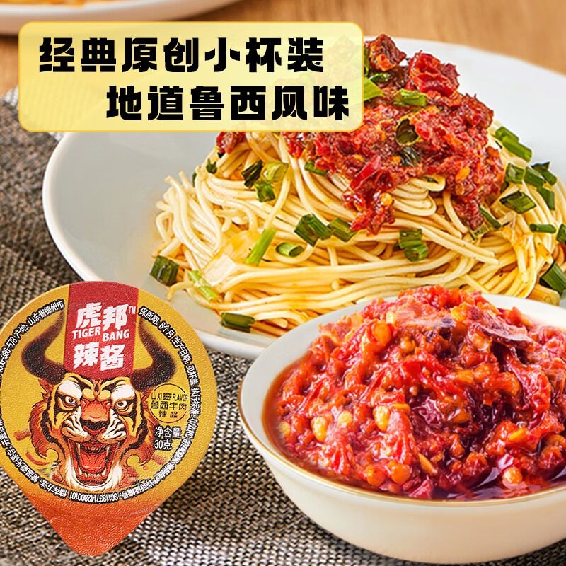 虎邦鲁西风味牛肉酱30gx6杯香辣拌面下饭酱小罐辣椒酱官方旗舰店