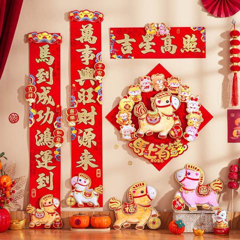 对联2026马年新款植绒立体卡通家用春联过年大门装饰福字门联年画