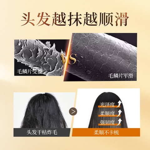 【卷后13.9亓】抹在发梢能被快速吸收,用后头发丝滑柔顺,发质色泽光亮,味道清新淡雅!