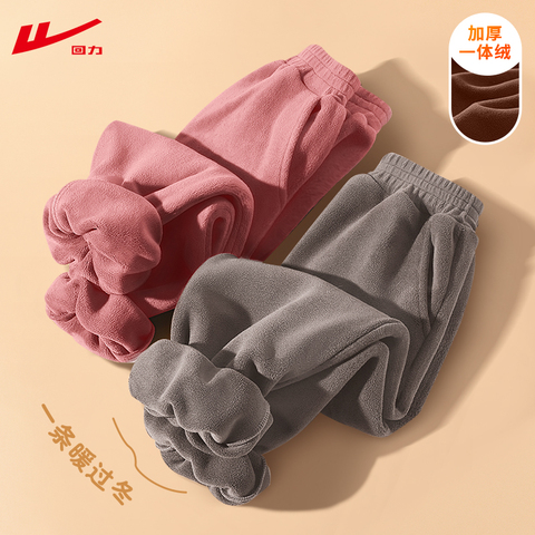 回力儿童加绒裤子,双面奥粒绒,外层御寒,内层保暖,锁绒锁暖,男童女童奥粒绒秋冬加厚女大童保暖裤一体绒长裤。