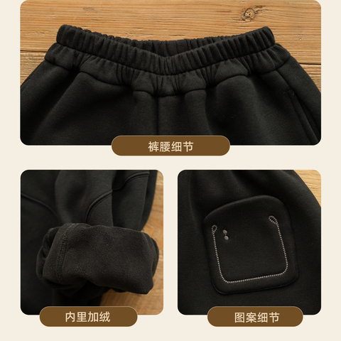 砚台家男童全棉加绒卫裤2025冬装休闲裤宝宝灯笼裤儿童黑色长裤子,到手价是70.04